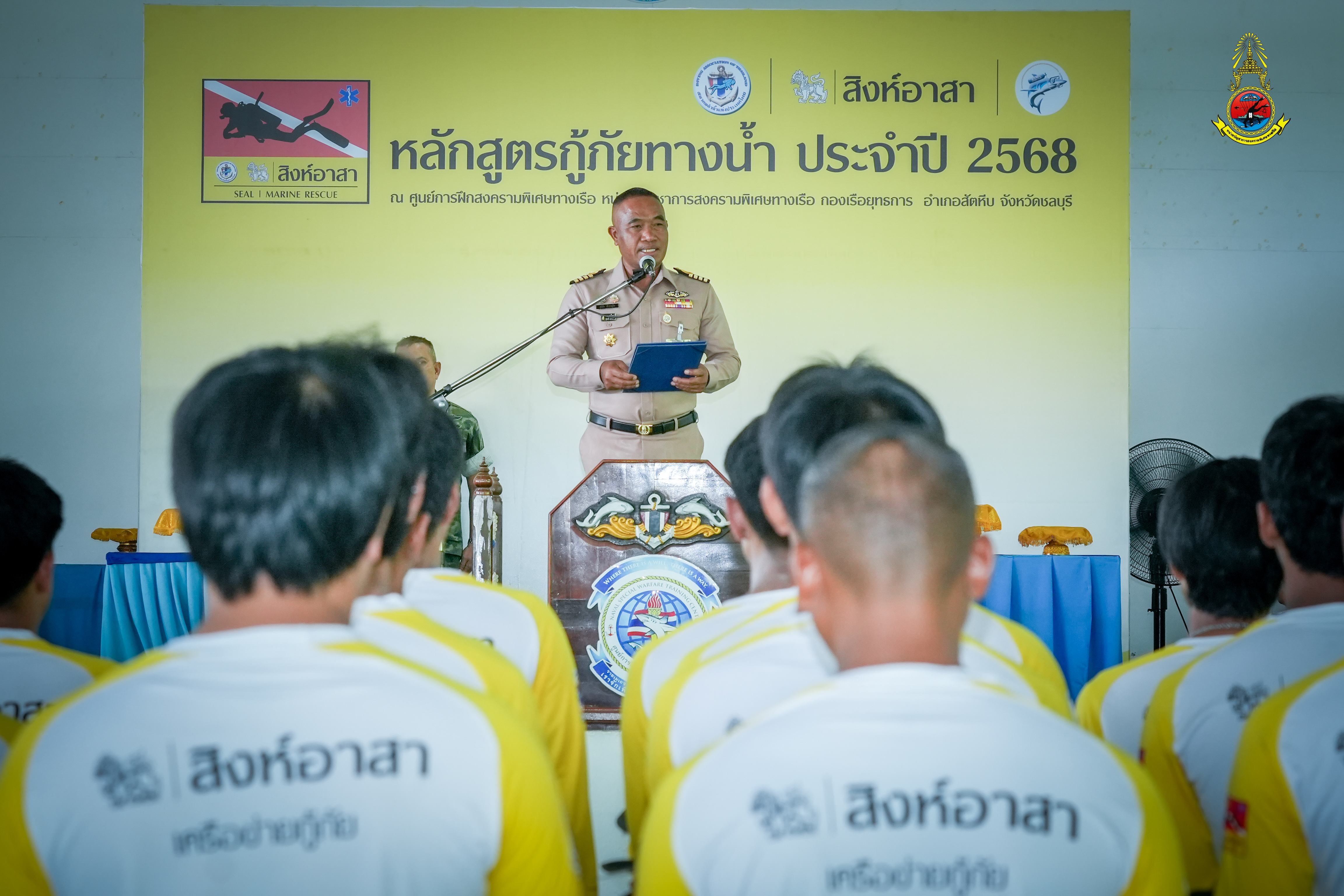 เมื่อวันที่ ๔ ก.ย.๖๘ น.อ.สุริยัน สำราญใจ รอง ผบ.นสร.กร. ผู้แทน ผบ.นสร.กร. และผู้แทน นายกสมาคมดำน้ำแห่งประเทศไทย เป็นประธานในพิธีมอบใบประกาศนียบัตรการดำน้ำแบบวงจรเปิด (Open Water Diving)และปิดการฝึกอบรมโครงการสิงห์อาสาหลักสูตรกู้ภัยทางน้ำ ประจำปี ๒๕๖๘ ณ อาคารร่วมใจ ศูนย์การฝึกสงครามพิเศษทางเรือ (เกาะพระ) นสร.กร. อ.สัตหีบ จว.ชลบุรี โดยมีผู้จบหลักสูตร และได้รับประกาศนียบัตร และบัตรดำน้ำของสมาคมจำนวน 34 นาย